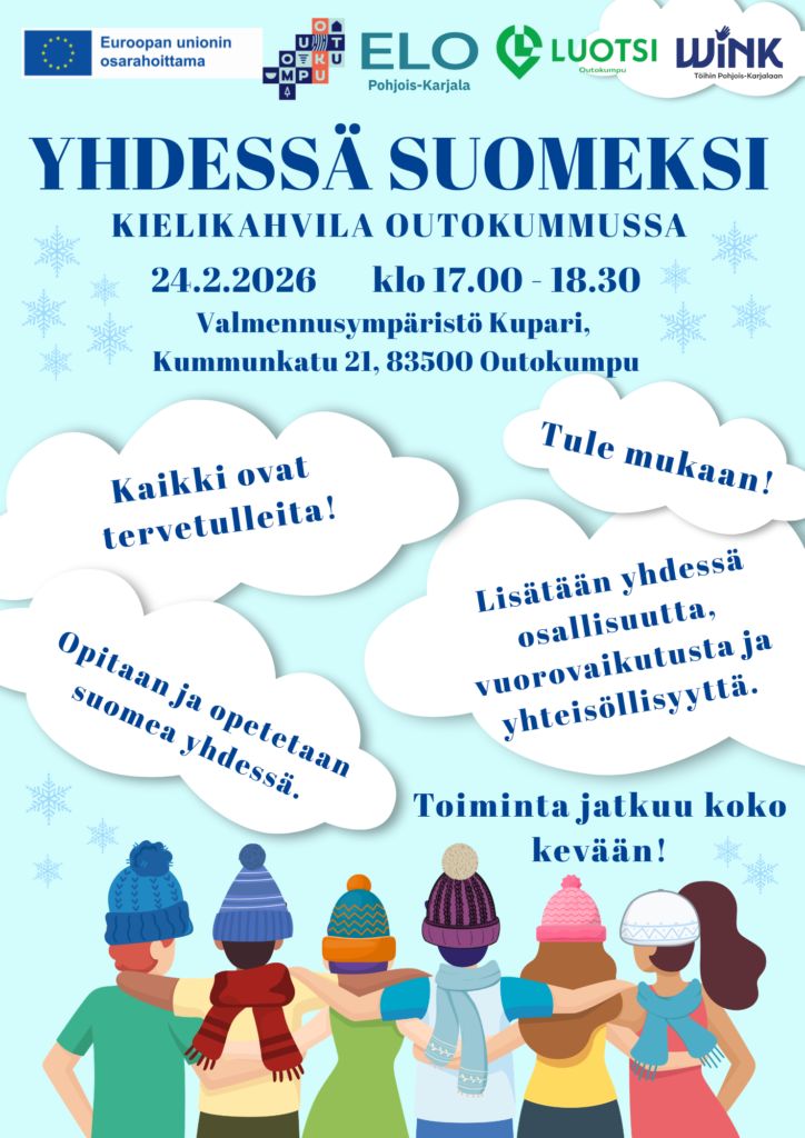 Teemme yhteistyötä ELO ‑hankkeen, Pohjois-Karjalan työllisyysalueen, Siun Soten, Outokummun kaupungin eri tulosyksiköiden, yhdistysten sekä yritysten kanssa.